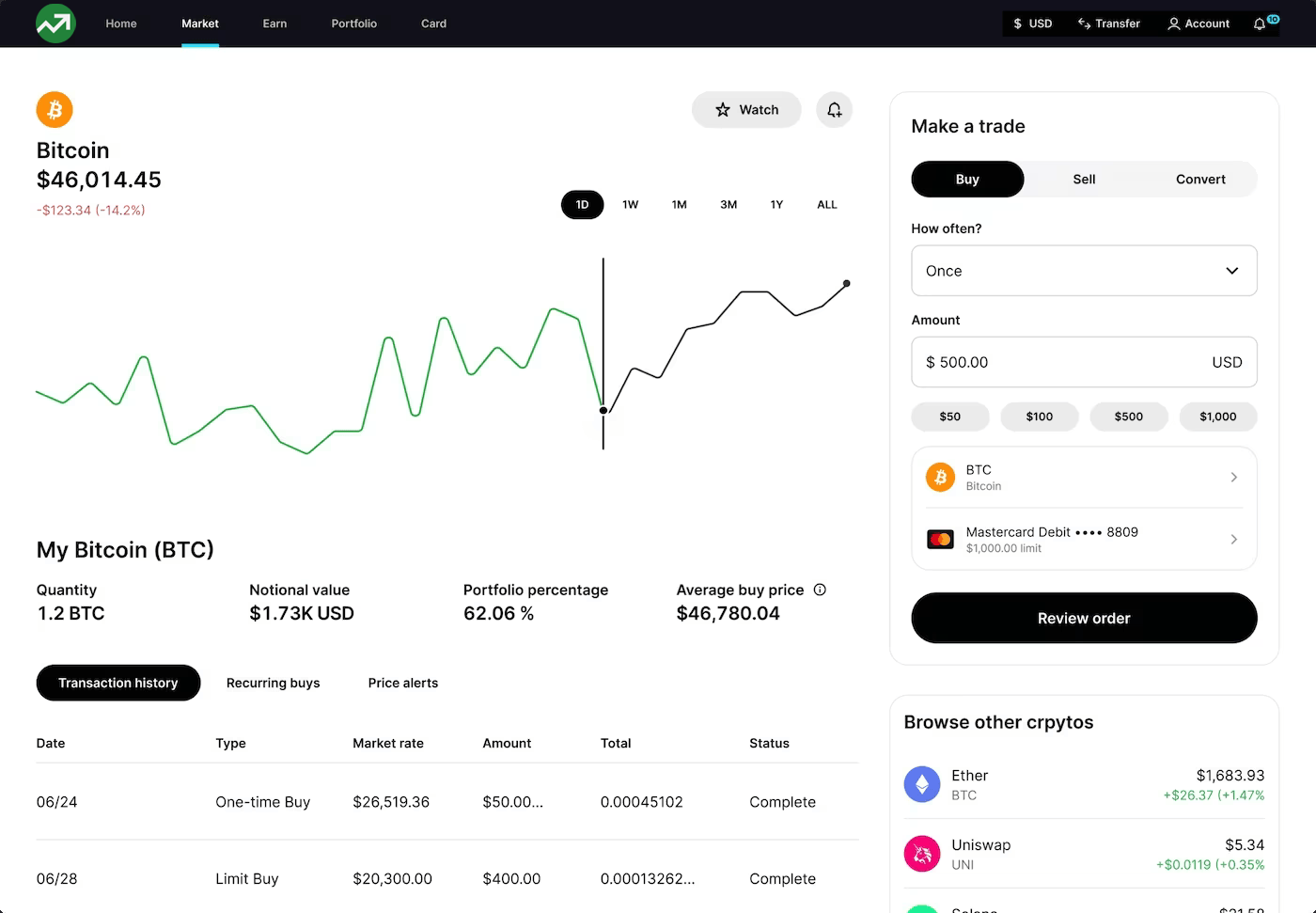 Get more crypto for your cash—and start with as little as $1. Buy, sell, and transfer BTC, DOGE, ETH, SHIB, and more.
